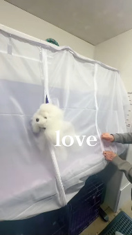 Fully enclosed grooming table cover designed for deshedding and blasting.